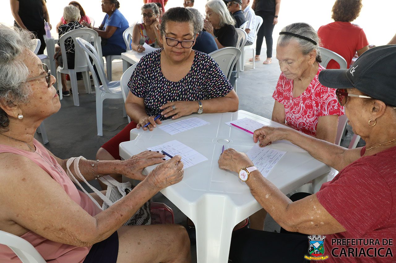 A Prefeitura de Cariacica, por meio da Secretaria de Assistência Social (Semas), programou atividades voltadas para os idosos. Na abertura, o grupo participou de um bingo musical, em que eles tinham que ouvir uma música, descobrir quem estava cantando e marcar a cartela com o nome do artista.