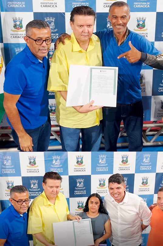 Na noite de ontem, às 18h30, na Escola Angelo Zani, em Mucuri, Cariacica, um evento histórico reuniu a comunidade local para celebrar a entrega de 271 escrituras sociais, devidamente registradas em cartório. A cerimônia, que contou com a presença do prefeito Euclério Sampaio, do Deputado Federal Messias Donato e do Vereador Cesinha, foi marcada por momentos de emoção e alegria.